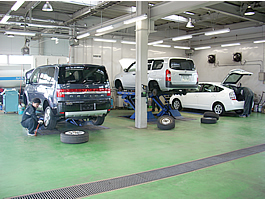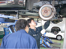 検査員が説明し、同じ目線で確認していただけます。 | 最新の設備でお客様の車を点検します。 |